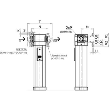 ※他の機器との接続面に配管ねじはありません。ご使用の際は、別途ブラケット付スペーサ(Y300T-2-D)(またはスペーサ)と、配管アダプタ(E300-□02~04-D)が必要です。