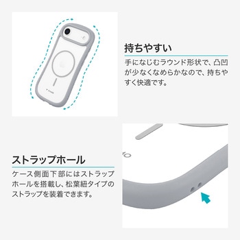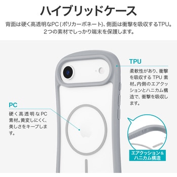 【60日間保証】【耐衝撃】 MagSafeアクセサリが使えるマグネットリング搭載/背面に挟んだステッカーの邪魔になりにくい細いリング設計/衝撃を吸収するTPUと、硬く高透明なポリカーボネートのハイブリッドケース/側面全体がなめらかにラウンドした持ちやすいデザイン/レンズ周りを高く設計/ボタンまで保護/ストラップホール搭載(側面)/ショルダーストラップの取り付けに最適な「挟み込みシート」付属