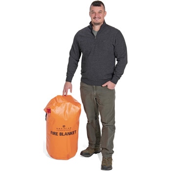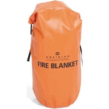 熱暴走への初動対応ができる耐熱ブランケットは、リチウムイオンバッテリーの発煙・発火時にかぶせるだけで、火炎・破片・有毒ガスの飛散を抑制します。