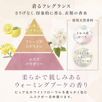 素材選定・製造方法からこだわったプレミアム柔軟剤。優しいウォーミングブーケの香り。本体の2.5倍。特大サイズ。世界中の高品質素材を厳選時間の流れごと楽しめる飽きの来ない香りその時々で最適な強さを添える残り香 抗菌※・防臭 ※すべての菌に効果があるわけではありません。