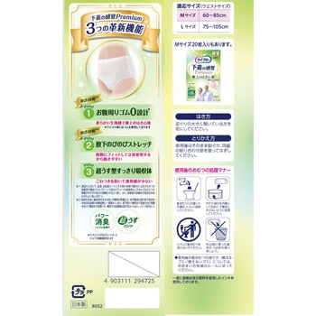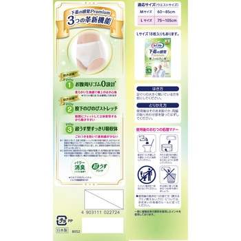 下着の感覚はそのままに、おなか周りゴム0設計でしめつけないから、極上のはき心地がつづくプレミアムタイプの紙パンツです。お腹周りゴム0設計がしめつけ感を防ぎ、股下伸縮ギャザーがフィット感を高めて動きやすいです。