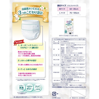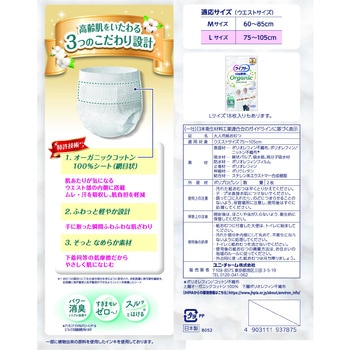 肌当たりが気になるウエスト部分にオーガニックコットン100%シートを搭載し、自然由来の触れ心地!さらに「ふわっと軽やか設計」で手に取った瞬間ふわふわ実感!「低摩擦のなめらか素材」を採用し、加齢で変化する高齢者の肌をいたわる紙パンツです。