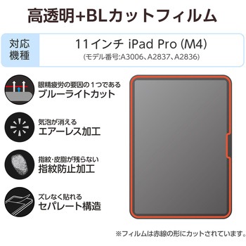保護フィルム Apple iPad Pro 11 インチ M4 2024 Wi-Fi モデル [ 背面用 ] 対応 高硬度9H ブルーライトカット反射防止 互換品メディアカバーマーケット税込¥2,638¥2,398
