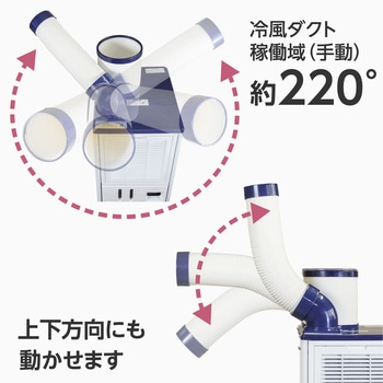 排熱は、最大600mmまで伸長可能な排気ダクトで屋外や別の方向に排出でき、使用空間の快適性を保ちます。冷風・送風の「強/弱」が選べる4つの運転モードを搭載。環境に配慮したR32冷媒を採用しています。