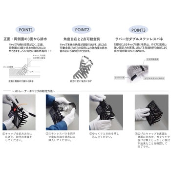 キャップ内側の空間が広く、正面、両側面の3 面で排水を取り込むことができます。ゴミ詰まりには断然有利!