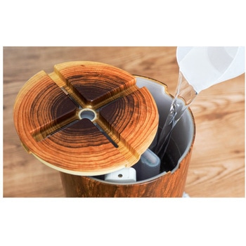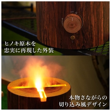 ミスト&LEDでリアルな炎を演出。ヒノキ原木を忠実に再現した、アロマ対応加湿器。