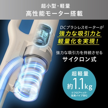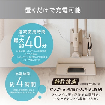 LED搭載かつコンパクトなヘッドで小回りが利き、家具のすき間のゴミもしっかりお掃除。スタンドは簡単置くだけ充電なので使いたいときにすぐ使えます。