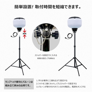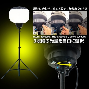 ・柔らかく広がる光:3段階(320W/220W/130W)の切替。バルーンが光を拡散し広範囲を明るく照射