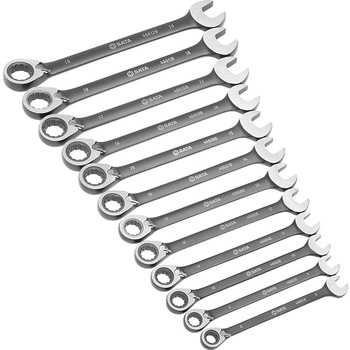 レンチラック付きで持ち運び、吊り下げ収納にも柔軟に対応できます。薄型設計の本体部分とヘッドで、狭い場所でもスムーズに作業できます。ギア数72、ラチェットボックスエンドの送り角度はわずか5度、狭い場所でも快適に作業できます。見やすい刻印により、作業中でもサイズを簡単に識別できます。光沢仕上げなため、汚れを簡単に拭き取ることができます。
