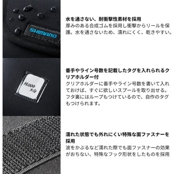 シマノスプールのキズを防ぐ専用スプールガードシマノリール専用のスプールガードです。リールから外したスプールを保管するための専用ケースとなります。本体部には、耐衝撃性のある素材を採用し、リールへのキズや衝撃を軽減。クリアホルダー付なので番手やライン号数のタグを入れて管理がしやすいです。