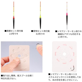 ウキ止め糸・ウキ・クッションゴムが入っており、仕掛けの取付方法も簡単!
