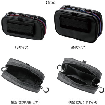 ベルト、バッグやフローティングベストのサイドに取り付け可能な追加ポーチ。横方向に取付けることで取出し口を広く設計し、収納物の出し入れ時に落下しにくくなっています。小さいタックルケースやスマートフォンとその他の小物(カギ、釣具小物)と分けて収納することが可能。小分けに収納することが可能な仕切りタイプと、仕切りのないフリータイプをラインナップ。
