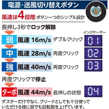 用途機器周辺の掃除等に回転数(min-1[r.p.m])弱 11700/中 21800/強 52000/ターボ電源内臓リチウムイオンバッテリー定格電圧(V)DC14.8本体寸法(mm)約153×102×47本体質量(g)約412使用時間(分)約弱 65/中 31/強 16/ターボ 8-9風速(m/s)弱 16m/s /中 28m/s /強 40m/s /ターボバッテリー電圧(V)3.7(29.6Wh)充電電圧(V)USB Type-C 5/9/12/15/20(USB PD3.0)充電電流(A)2(最大2.5まで)充電時間(時間)約2~3(充電器仕様により変わります)バッテリー容量(mAh)8000内容量1台