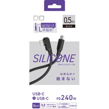 CIO L字型シリコンケーブルN2 CtoC 240W 0.5m ブラック
