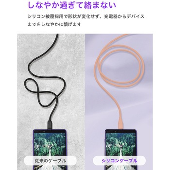 手触りなめらかなシリコン被覆で、絡まりにくいケーブルを実現!