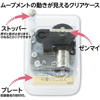 美しい音色を奏でるコンパクトオルゴール!あの話題曲「可愛くてごめん」のオルゴールです。ゼンマイを巻くだけで美しいメロディーが響き、透明ケース越しにムーブメントの動きも楽しめます。小型で扱いやすく、木工や粘土作品と組み合わせたオリジナルクラフトにもおすすめです。