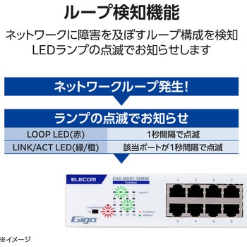 ループ検知機能を搭載しています。LEDランプの点滅によりネットワークループ発生をお知らせし、ネットワーク障害の解消を促します。