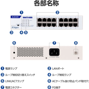 仕様●Auto MDI/MDI-X:対応●BPDU透過機能:対応●EAP透過機能:対応●スイッチングファブリック:32.0Gbps●ノンブロッキング:対応●パケット転送速度:1,488,095パケット/秒(1000Mbps)、148,809パケット/秒(100Mbps)、14,880パケット/秒(10Mbps)●バッファメモリー:512Kbytes(各ポートに動的割り当て)●ループ検知・防止機能:ループ検知●最大実効伝送速度:16.0Gbps●省電力機能:らくらく節電E対応(IEEE 802.3az)●専用オプション品|マグネット:EHB-EX-MG4●測定時のポート速度とポート数:1Gbps:16ポート●盗難防止:セキュリティスロットなし●壁掛け用穴:あり(間隔:120mm)●冷却ファン:なしセット内容製品本体1台 専用ACケーブル(3ピン、約1.8m)1本 3ピン-2ピン変換アダプター1個 ACケーブル抜け防止バンド1個 19インチラック取付金具2個 19インチラック取付金具ネジ8本 ゴム足4個 安全にお使いいただくために1枚 クイックセットアップガイド1枚材質メタル色ホワイト質量(g)約820(本体のみ)外形寸法(mm)幅約215.5×奥行約125.0×高さ約42.0(本体のみ)ポート数16ポート消費電力(W)7.5(最大)適合規格VCCI Class Aコネクタ形状RJ-45×16入力電圧(V)AC100~240±10% 50/60Hz準拠規格IEEE 802.3ab、IEEE 802.3u、IEEE 802.3通信方式フルデュプレックス、ハーフデュプレックス保管温湿度範囲温度:-40℃~70℃、湿度:5%~90%(ただし結露なきこと)保証期間1年間動作温湿度範囲温度:0℃~50℃、湿度:10%~90%(ただし結露なきこと)適合ケーブル1000BASE-T:UTPカテゴリー5e以上、100BASE-TX:UTPカテゴリー5以上、10BASE-T:UTPカテゴリー3以上設置方法水平設置、壁掛け、19インチラックマウント、マグネット(別売 EHB-EX-MG4使用)発熱量(KJ/h)約27.0(最大)電源仕様内蔵電源フローコントロール制御IEEE 802.3x(フルデュプレックス時)、バックプレッシャー(ハーフデュプレックス時)MACアドレス登録数8,192件(全ポート合計)オートネゴシエーション対応ジャンボフレーム対応(15Kbytes)スイッチング方式ストア&フォワード伝送速度1000Mbps(1000BASE-T)、100Mbps(100BASE-TX)、10Mbps(10BASE-T)エネルギー消費効率(W/Gbps)0.5最大パケット転送能力(Mpps)23.8MTBF(時間)673000@25℃、221000@50℃PoE対応非対応内容量1個