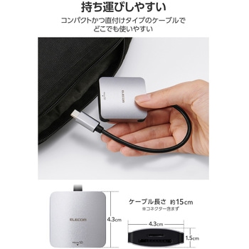 ケーブルは紛失の心配がない直付けタイプで、ケーブル長はデスク周りでの使用にも邪魔にならない約15cmです。