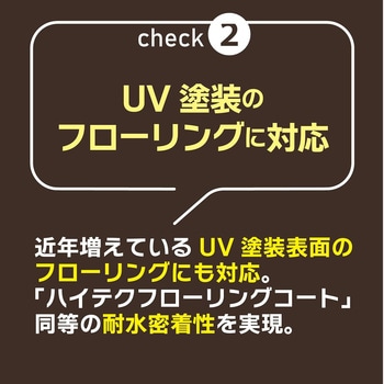 新しいフローリング材に多いUV塗装にも対応。「ハイテクフローリングコート」同等の耐水密着性を実現。