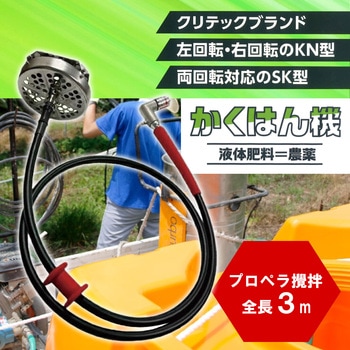 クリテックブランドの新しいZシリーズ型で、特殊構造のフレキシブルシャフトを使用。シャフト+チューブが破断しやすい根元部分を、カバーするためのガードが付き。タンク内で撹拌機が安定して攪拌を行うための固定ゴム付き。クリテックブランド独自のカゴ形状により、効率よく撹拌できるので薬液が底に溜まりにくくなる。フレキチューブは4層構造で、他社メーカーの2層/3層よりも丈夫。動噴に接続しやすい両方向対応のL型形状。