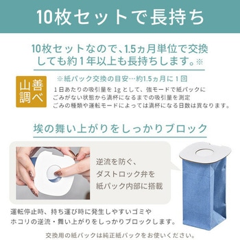 ※掃除機の紙パックは機能部品です。山善の掃除機には、必ず山善製の純正紙パックをご使用ください。