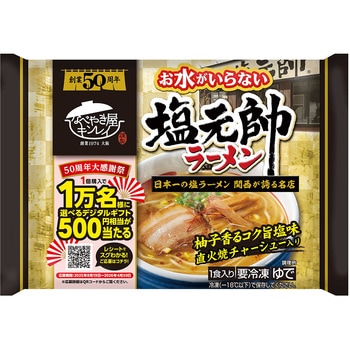 関西で人気のラーメン店「塩元帥(しおげんすい)」監修の下商品化しました。スープ麺具が一つになっていますのでお鍋に入れて温めるだけでお召し上がりいただけます。<スープ>鶏ガラ削り節香味野菜などの旨みが一体となった味わい深いスープ。焦がし玉ねぎの香ばしさゆずの爽やかな香りがスープのアクセントです。<麺>もちもちとした食感とツルっとしたのど越しの良さが特徴の平打ち麺です。<具材>直火焼チャーシューメンマ青ネギ焦がし玉ねぎゆず果皮糸唐辛子入り。