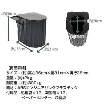 用途防災用、アウトドアなどに。セット内容簡易トイレ、凝固剤×12、処理袋×12グレー耐荷重(kg)約300寸法(高さH×幅W×奥行D)(cm)36×31×38内容量1個