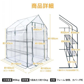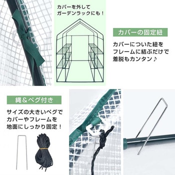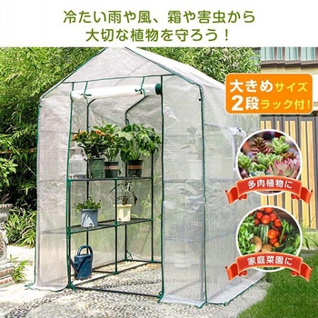 冷たい雨や風、霜や害虫から植物を守る大型ビニール温室です。2段ラックで収納力抜群。丈夫な補強糸入りカバーで耐久性が向上しています。ロールアップ式ファスナーで温度調整も簡単にでき、小窓付きで通気性も良好です。