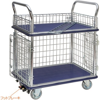 商品を安全に保管し運搬する上下金網付きワゴン台車です。