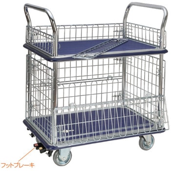 二段式ワゴン台車・上下金網付き・フットブレーキなし