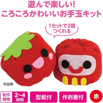 遊んで楽しい!ころころかわいいお手玉キット!リストバンドとフェルトでつくる、ころころかわいいお手玉の手芸キットです。1セットで2個作れるので、遊び道具としてはもちろん、インテリア小物としても楽しめます。フェルトを自由に装飾すれば、動物モチーフやキャラクター風など、オリジナルデザインにアレンジ可能。型紙と作例が付いているので、裁縫初心者さんでも安心して取り組めます。製作時間の目安は約2~4時間。気軽にハンドメイドを楽しみながら、保育教材としても活用できる実用的なキットです。
