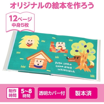 世界に一冊だけ!自分だけの物語をつくろう、絵本づくりキット!自分だけの絵本がつくれる製本済みキットです。しっかりストーリーがつくれる12ページの絵本です。文章も絵も自由に描けて、オリジナルの作品がつくれます。ストーリーの下書きや進捗管理に便利なワークシートと自己評価シート付きです。水性ペン、色鉛筆、水彩絵の具、ポスターカラーやアクリル絵の具等様々な描画材が使えます。表紙は厚紙仕様+透明カバー付きで長く保管できます。学校教材や発表会、自由研究にもぴったりです。