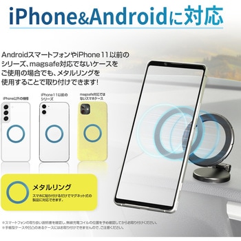 スマホスタンド 両面マグネット (キッチン/冷蔵庫/車) 360度回転 角度調整 メタルプレート