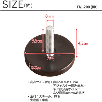 テーブルの脚などに取り付けて使用できる、ネジ直径8mmのアジャスター40個セットです。脚の接地面にあるネジ穴に簡単に手回しで取り付けることができます。アジャスターを付けて脚の高さを微調整でき、テーブルのガタ付きを軽減します。