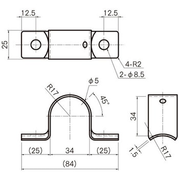 適用丸パイプ:34Φ 固定側:アングルなどフラット面
