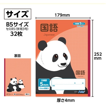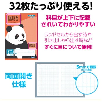 科目がひと目でわかる!書きやすさと見やすさを両立した国語ノート!B5サイズの5mm方眼国語用ノート10冊セットです。上下に科目名が入っていて、ランドセルや引き出しから出す時にもすぐ見つかります。無線綴じでページがしっかり開くので書きやすく、長文練習や漢字練習にもぴったり。長時間使っても目が疲れにくい水色の罫線と、白色度が高く見やすい紙を採用しています。学習やドリル用としてたっぷり使える32枚入りです。 学校や家庭学習にぴったりのお得な10冊セットです。