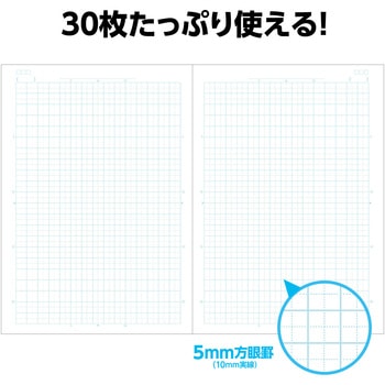 科目シール付きで管理も簡単!書きやすい定番の5mm方眼ノート!B5サイズの5mm方眼ノートです。無線綴じ仕様でしっかり開いて書きやすく、全科目に対応可能。リーダー罫入りで行を整えやすく、科目シール10枚と自由に書き込める無地シール2枚付きで整理にも便利です。長時間使っても目が疲れにくい水色の罫線と、白色度が高く見やすい紙を採用しています。学習やドリル用としてたっぷり使える30枚入りです。