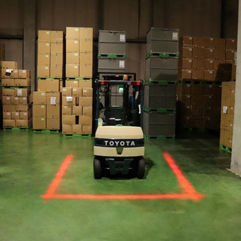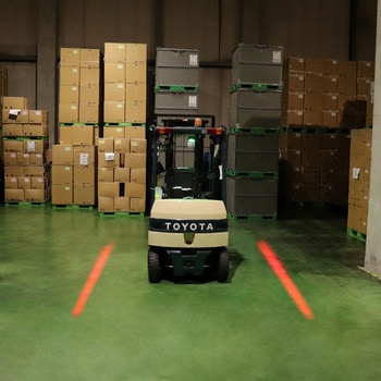 FREAK フォークリフト用LEDラインライトは、フォークリフトと作業員の衝突を防止するための警告灯です。薄暗い倉庫内はもちろん、明るい倉庫内でもしっかりと目視確認ができる20Wの高性能ライトです。赤/青/緑の3色ラインナップで、倉庫・工場内の床色や環境・目的に応じて適切なLED色を選択することが可能です。