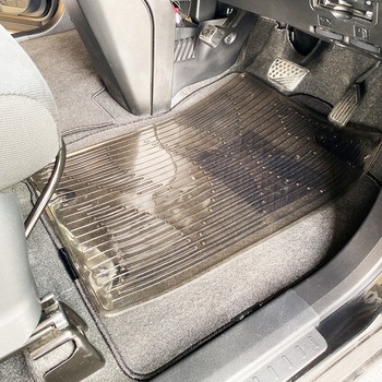 車内の足元の汚れを防ぐクリアタイプのフロアマットです。裏面には、マットのズレを防止するスパイクを採用。