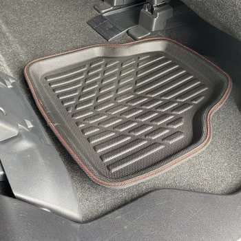 カーボン調デザインの、バケットタイプのフロアマットです。タフでスポーテイーなイメージのカーボン調デザインで足元をクールに演出します。コンパクトサイズであらゆる車種に対応。