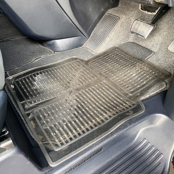車内の足元の汚れを防ぐクリアタイプのフロアマットです。裏面には、マットのズレを防止するスパイクを採用。
