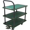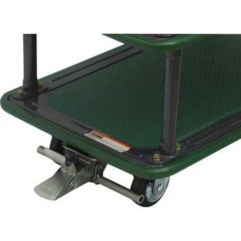 分けて整理しやすい3段式で、ピッキングに最適な台車です。操作が簡単で、「ペダル」を一回踏むとストップ、「ペダル」を蹴り上げると解除になるストッパー付です。取り替えキャスター(別売)を使いオール自在車仕様などに変更可能です。車輪に標準ラジアルベアリングを採用、軽く静かに動きます。