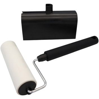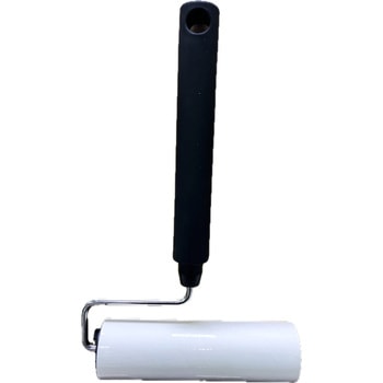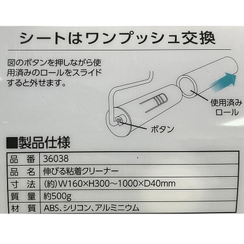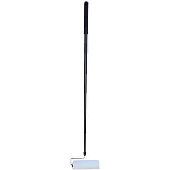 柄の部分はスライドすると伸縮(約300mm~1000mm)して、用途に応じて使用できます。短くてハンディローラー、長くてフロア用ローラー。本体の芯部(ロール取り付け部)のボタンを押すと手を使わずに簡単に外せます。マグネット付きスタンドが付属でついていますので、自立収納が可能。テープ(テスト用1巻:サイズ幅160mm 芯径約37mm)が付属しております。