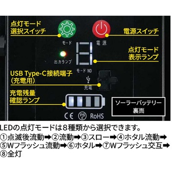 ソーラーバッテリー付きで、配線不要でどこでも設置が可能です。