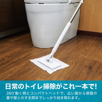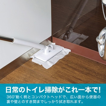 手を汚さず、簡単に着脱することができます。360℃動く柄とコンパクトヘッドで、広い面から便器の裏や壁とのすき間までしっかり拭き取れます。