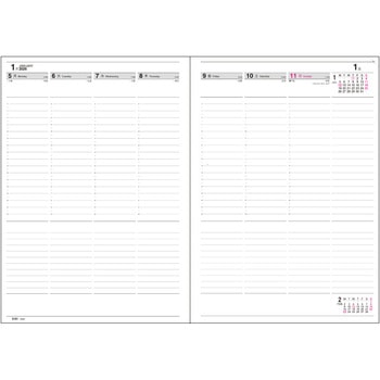 背がしなやかでとじ目まで開きやすい糸かがりとじ製本の見開き1週間バーチカルタイプダイアリーです