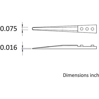 先端チップはセラミックで非常に硬く優れた曲げ強度を持ち耐摩耗性に優れていますまた、耐熱性・耐食性がありESD性能(10^7~10^9)もあります。