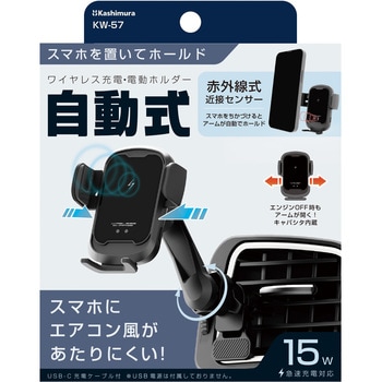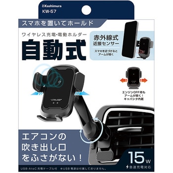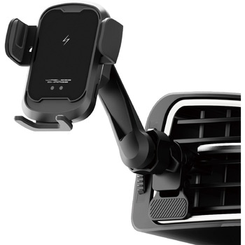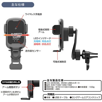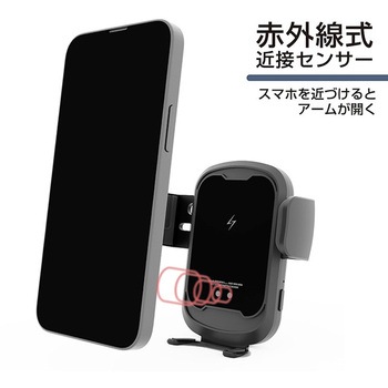 赤外線センサーによりスマホをかざすと自動で開閉してホールドします。ワイヤレス充電対応のスマートフォンを、ホールドしながらワイヤレス充電。4つの安心・安全設計。(過熱保護・異物検出・過電流保護・過電圧保護)ロングアームエアコン取り付けタイプ。