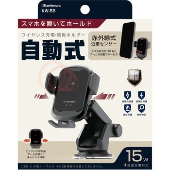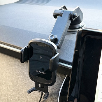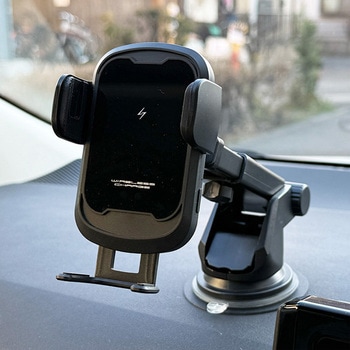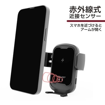 赤外線センサーによりスマホをかざすと自動で開閉してホールドします。ワイヤレス充電対応のスマートフォンを、ホールドしながらワイヤレス充電。4つの安心・安全設計。(過熱保護・異物検出・過電流保護・過電圧保護)吸盤取り付けタイプ。